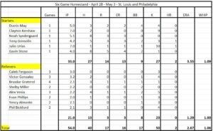 If we were to eliminate Gavin Stone’s outing, the starters ERA would be 2.79, and the starters WHIP would be .897.