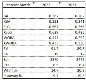 Statcast (From Baseball Savant) provides a comparison of his 2022 four-seam fastball vs his 2021 four-seamer: