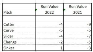 - 2022: +6 (1,472 best pitch out of 1,497 MLB Pitches)