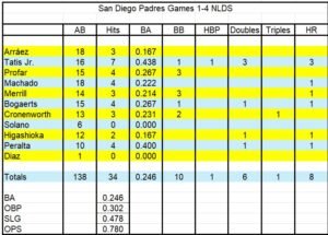 So how do you attack the SD hitters? Here is what they have done in the first 4 games of the NLDS: